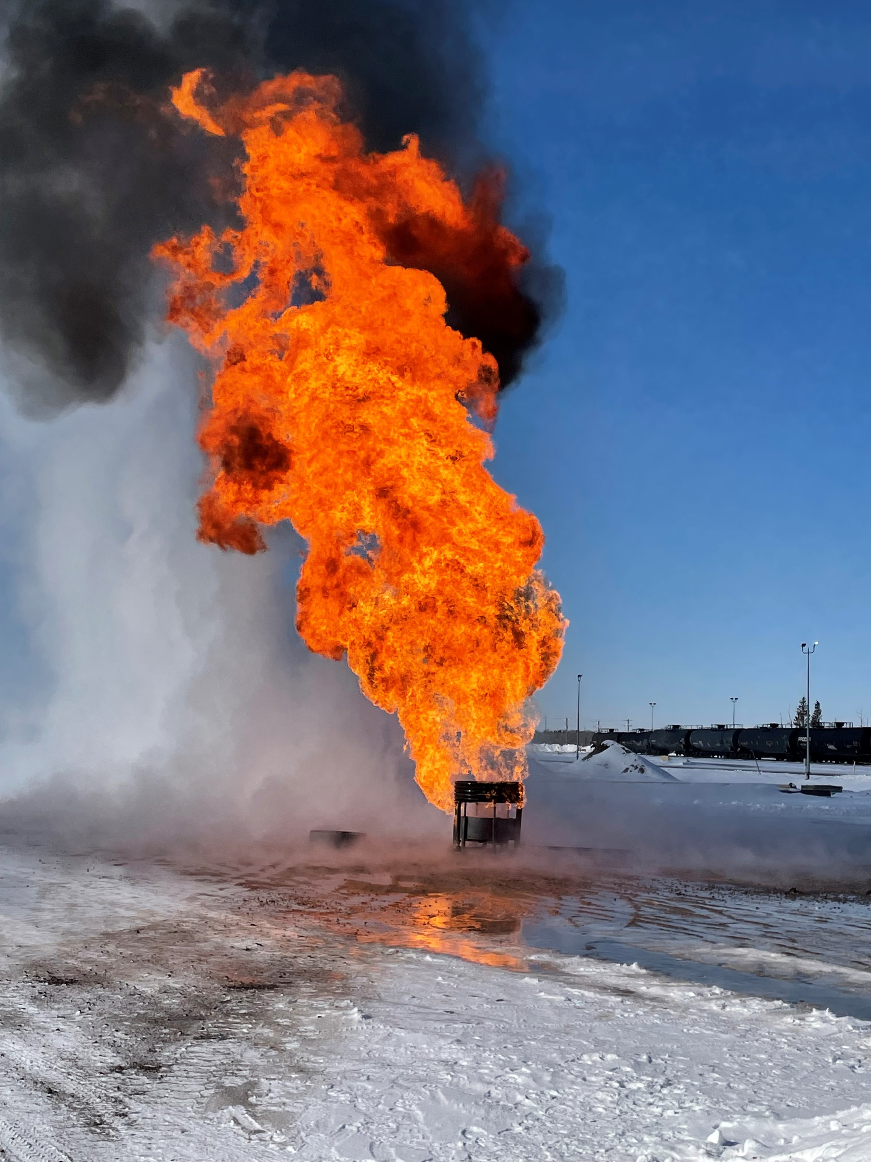 Our first two days of training took place at AltaGas’ Fort Saskatchewan facility and included reviewing and practicing liquefied petroleum gas transfer procedures on day one and testing the efficiency and effectiveness of our ERAC-manufactured liquid flare pots on day two. Special thanks to AltaGas for providing the location and fuel to allow us to properly do our training and test our new flare pot equipment.
