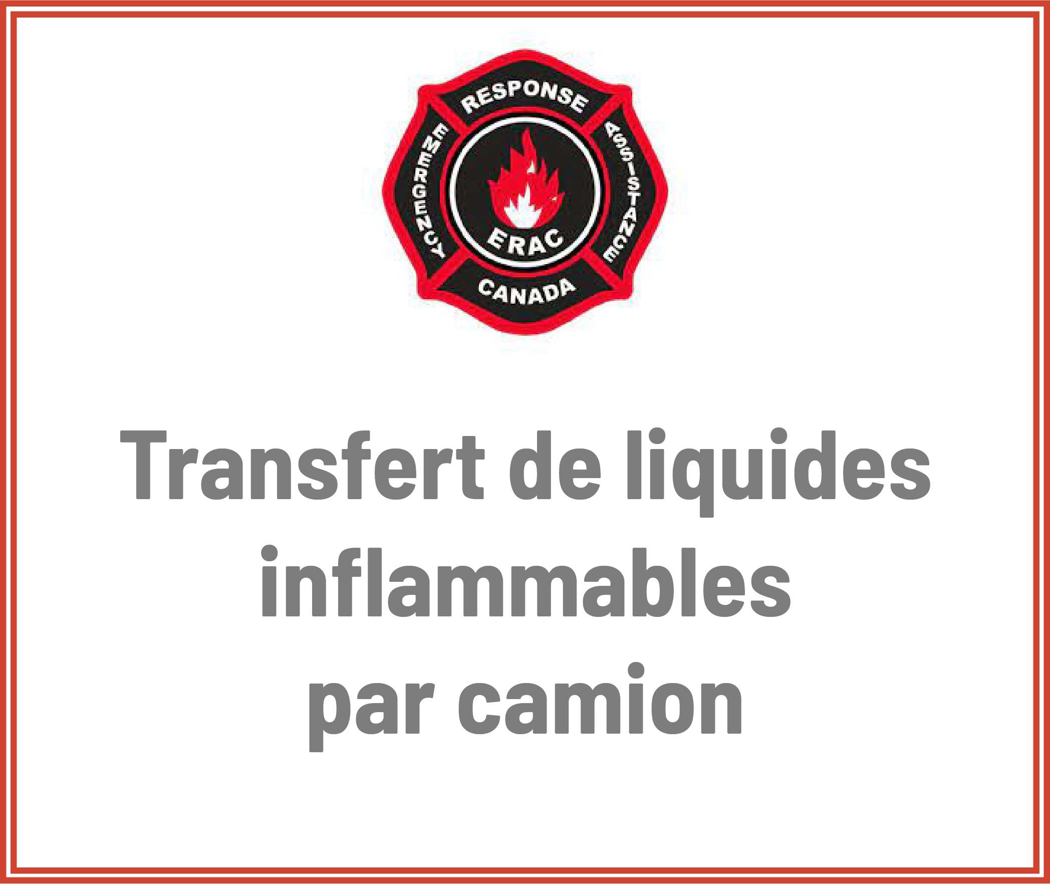 Ce cours assure que les intervenants de l’AIUC peuvent transférer de façon sécuritaire des liquides inflammables à partir d'un camion endommagé vers un contenant récepteur sur les lieux d'un incident. Ce cours est destiné aux intervenants qui sont appelés à travailler avec des liquides inflammables transportés par camion.